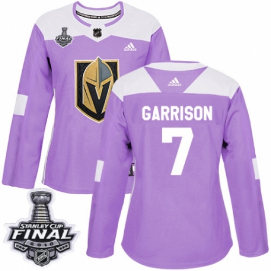 Women's Adidas Vegas Golden Knights #7 Jason Garrison Authentic Purple Fights Cancer Practice 2018 Stanley Cup Final NHL Jersey