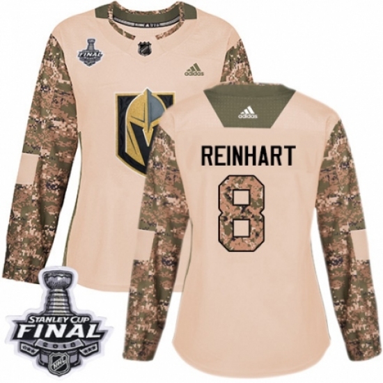 >Women's Adidas Vegas Golden Knights #8 Griffin Reinhart Authentic Camo Veterans Day Practice 2018 Stanley Cup Final NHL Jersey