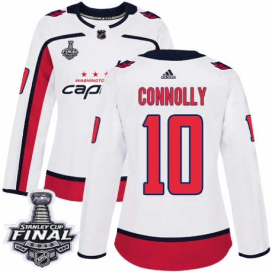 >Women's Adidas Washington Capitals #10 Brett Connolly Authentic White Away 2018 Stanley Cup Final NHL Jersey
