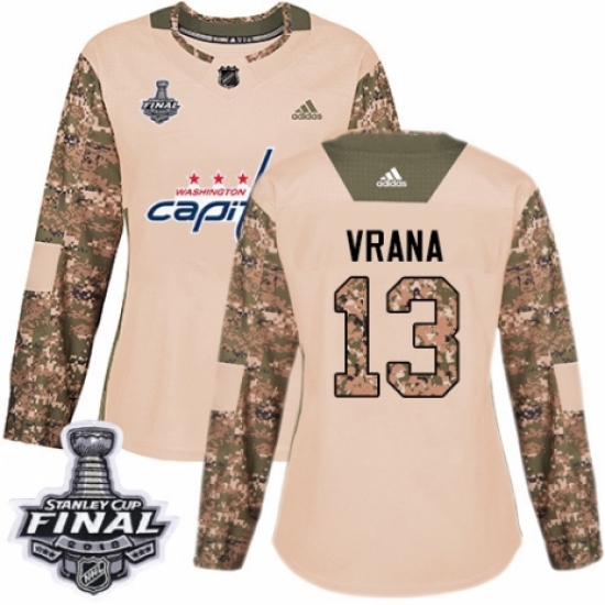 Women's Adidas Washington Capitals #13 Jakub Vrana Authentic Camo Veterans Day Practice 2018 Stanley Cup Final NHL Jersey
