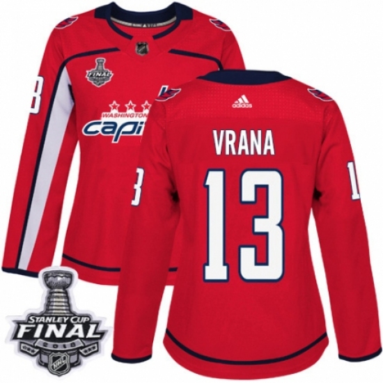 Women's Adidas Washington Capitals #13 Jakub Vrana Authentic Red Home 2018 Stanley Cup Final NHL Jersey