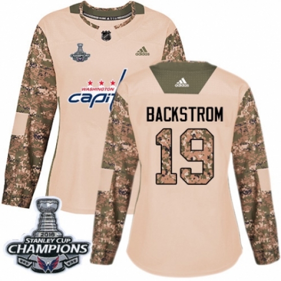 Women's Adidas Washington Capitals #19 Nicklas Backstrom Authentic Camo Veterans Day Practice 2018 Stanley Cup Final Champions NHL Jersey