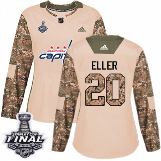 Women's Adidas Washington Capitals #20 Lars Eller Authentic Camo Veterans Day Practice 2018 Stanley Cup Final NHL Jersey
