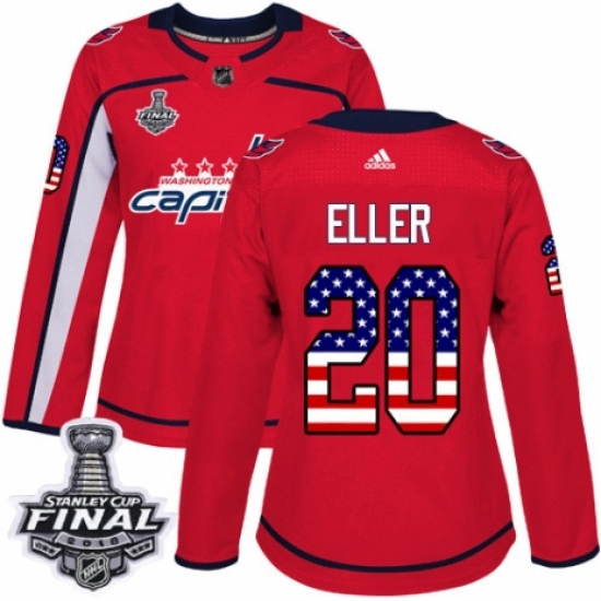 Women's Adidas Washington Capitals #20 Lars Eller Authentic Red USA Flag Fashion 2018 Stanley Cup Final NHL Jersey