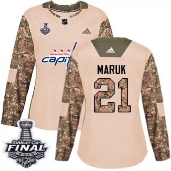 Women's Adidas Washington Capitals #21 Dennis Maruk Authentic Camo Veterans Day Practice 2018 Stanley Cup Final NHL Jersey