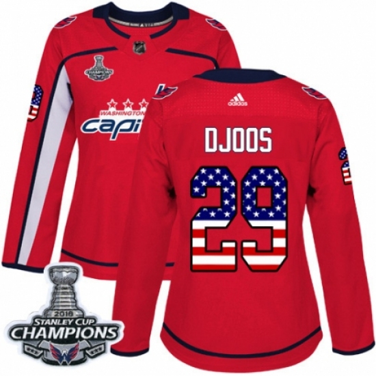 >Women's Adidas Washington Capitals #29 Christian Djoos Authentic Red USA Flag Fashion 2018 Stanley Cup Final Champions NHL Jersey