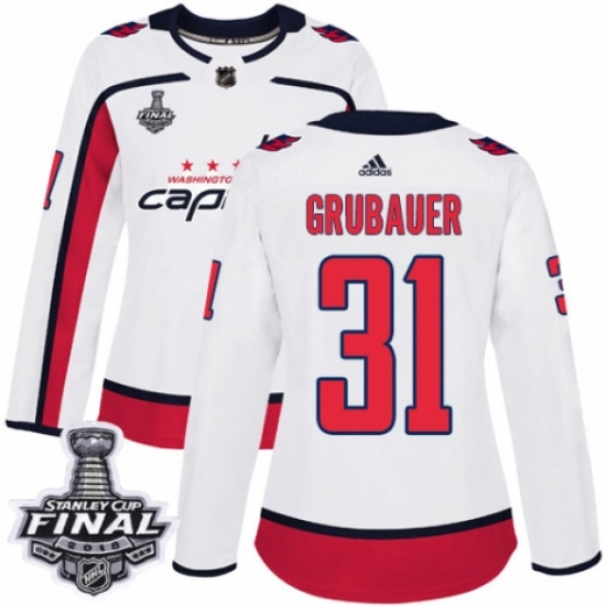 Women's Adidas Washington Capitals #31 Philipp Grubauer Authentic White Away 2018 Stanley Cup Final NHL Jersey