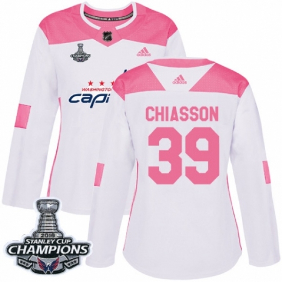 Women's Adidas Washington Capitals #39 Alex Chiasson Authentic White Pink Fashion 2018 Stanley Cup Final Champions NHL Jersey