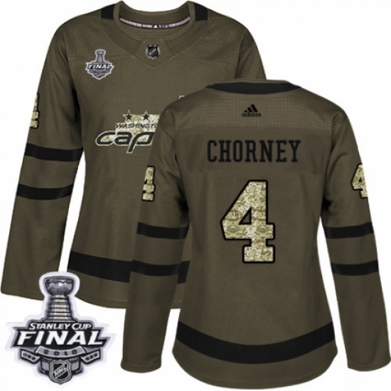 Women's Adidas Washington Capitals #4 Taylor Chorney Authentic Green Salute to Service 2018 Stanley Cup Final NHL Jersey