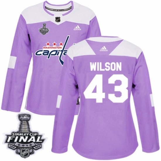 Women's Adidas Washington Capitals #43 Tom Wilson Authentic Purple Fights Cancer Practice 2018 Stanley Cup Final NHL Jersey