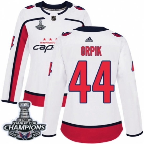Women's Adidas Washington Capitals #44 Brooks Orpik Authentic White Away 2018 Stanley Cup Final Champions NHL Jersey