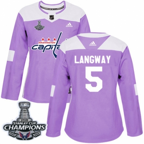 Women's Adidas Washington Capitals #5 Rod Langway Authentic Purple Fights Cancer Practice 2018 Stanley Cup Final Champions NHL Jersey