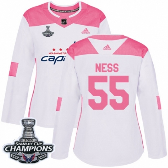 Women's Adidas Washington Capitals #55 Aaron Ness Authentic White Pink Fashion 2018 Stanley Cup Final Champions NHL Jersey