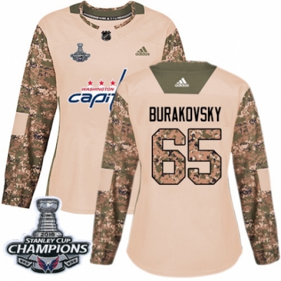 Women's Adidas Washington Capitals #65 Andre Burakovsky Authentic Camo Veterans Day Practice 2018 Stanley Cup Final Champions NHL Jersey