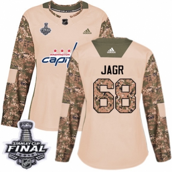 >Women's Adidas Washington Capitals #68 Jaromir Jagr Authentic Camo Veterans Day Practice 2018 Stanley Cup Final NHL Jersey