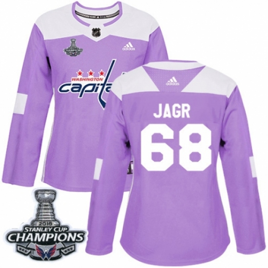 >Women's Adidas Washington Capitals #68 Jaromir Jagr Authentic Purple Fights Cancer Practice 2018 Stanley Cup Final Champions NHL Jersey