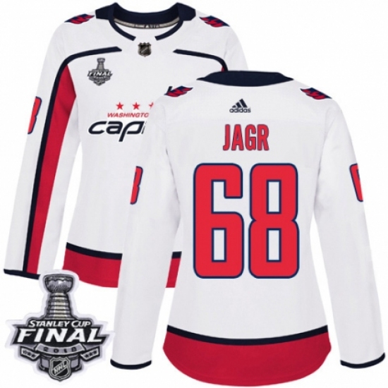Women's Adidas Washington Capitals #68 Jaromir Jagr Authentic White Away 2018 Stanley Cup Final NHL Jersey
