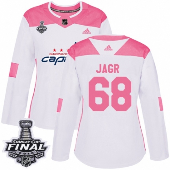 Women's Adidas Washington Capitals #68 Jaromir Jagr Authentic White/Pink Fashion 2018 Stanley Cup Final NHL Jersey