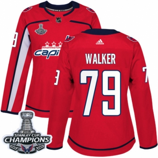 Women's Adidas Washington Capitals #79 Nathan Walker Authentic Red Home 2018 Stanley Cup Final Champions NHL Jersey