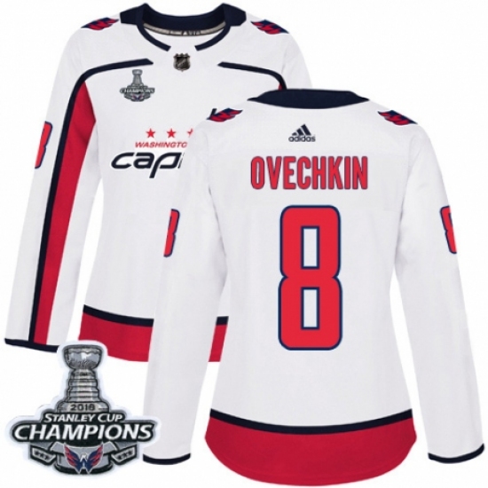 Women's Adidas Washington Capitals #8 Alex Ovechkin Authentic White Away 2018 Stanley Cup Final Champions NHL Jersey