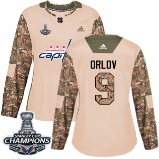Women's Adidas Washington Capitals #9 Dmitry Orlov Authentic Camo Veterans Day Practice 2018 Stanley Cup Final Champions NHL Jersey