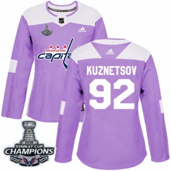 Women's Adidas Washington Capitals #92 Evgeny Kuznetsov Authentic Purple Fights Cancer Practice 2018 Stanley Cup Final Champions NHL Jersey