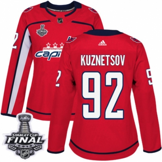 Women's Adidas Washington Capitals #92 Evgeny Kuznetsov Authentic Red Home 2018 Stanley Cup Final NHL Jersey