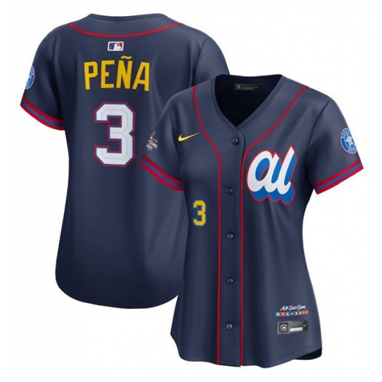 >Women's American League #3 Jeremy Pena Navy 2025 All-Star Limited Stitched Baseball Jersey(Run Small)