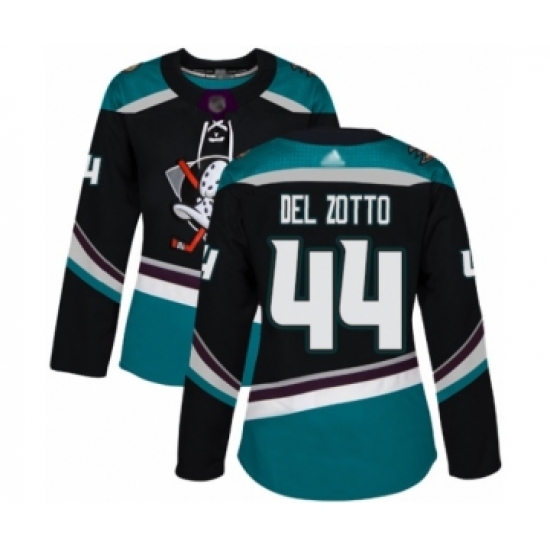 >Women's Anaheim Ducks #44 Michael Del Zotto Authentic Black Teal Alternate Hockey Jersey