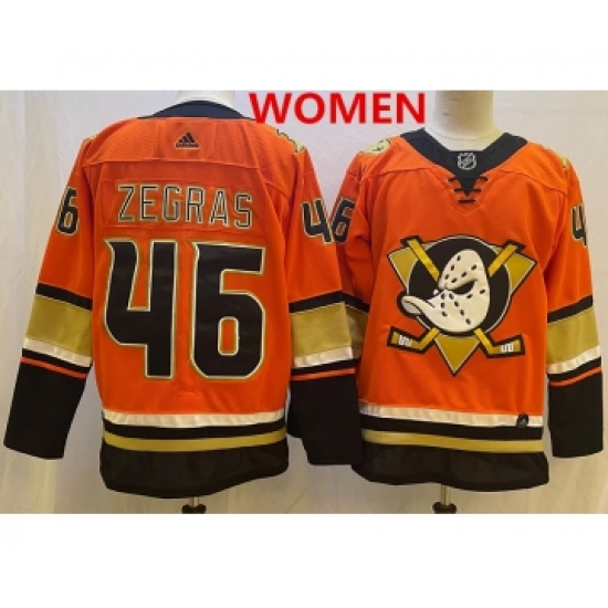 >Women's Anaheim Ducks #46 Trevor Zegras Orange Authentic Adidas Jersey