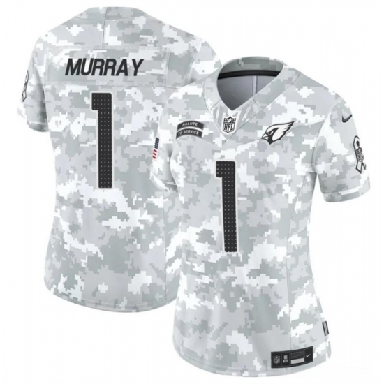 >Women's Arizona Cardinals #1 Kyler Murray 2024 F.U.S.E Arctic Camo Salute To Service Limited Stitched Football Jersey(Run Small)