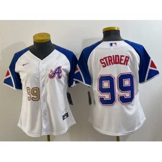 >Women's Atlanta Braves #99 Spencer Strider Number White 2023 City Connect Cool Base Stitched Jersey