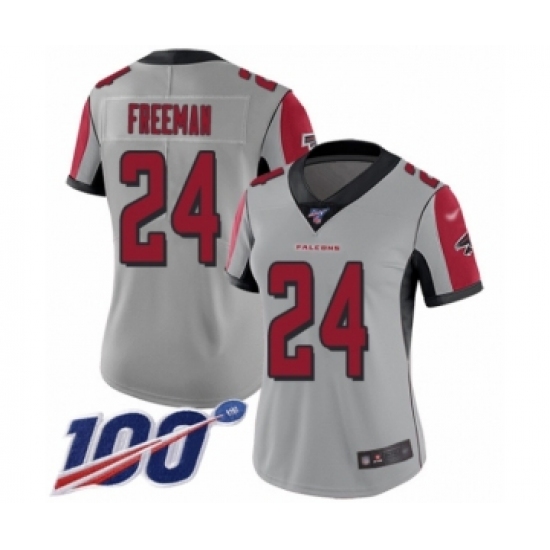 >Women's Atlanta Falcons #24 Devonta Freeman Limited Silver Inverted Legend 100th Season Football Jersey
