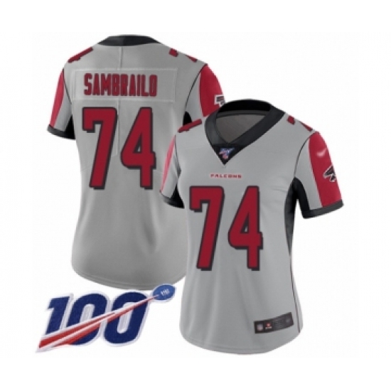 Women's Atlanta Falcons #74 Ty Sambrailo Limited Silver Inverted Legend 100th Season Football Jersey