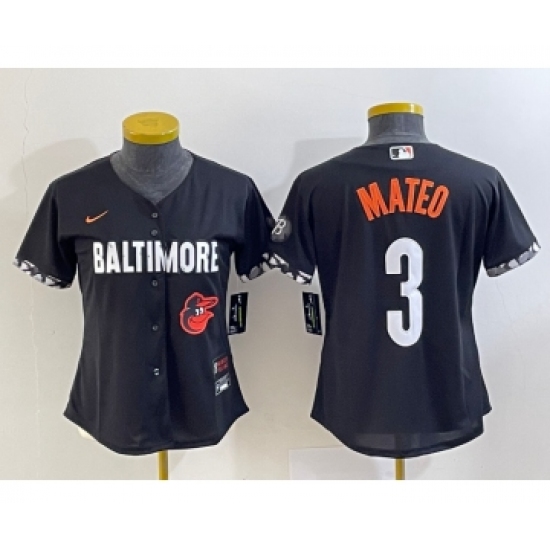 >Women's Baltimore Orioles #3 Jorge Mateo Black 2023 City Connect Cool Base Stitched Jersey