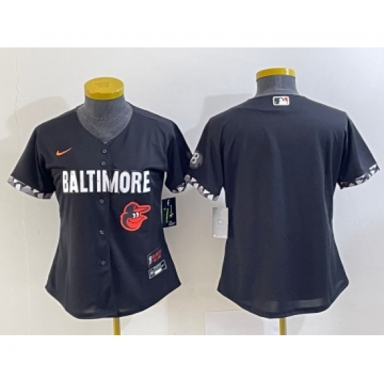 >Women's Baltimore Orioles Blank Black 2023 City Connect Cool Base Stitched Jersey 1