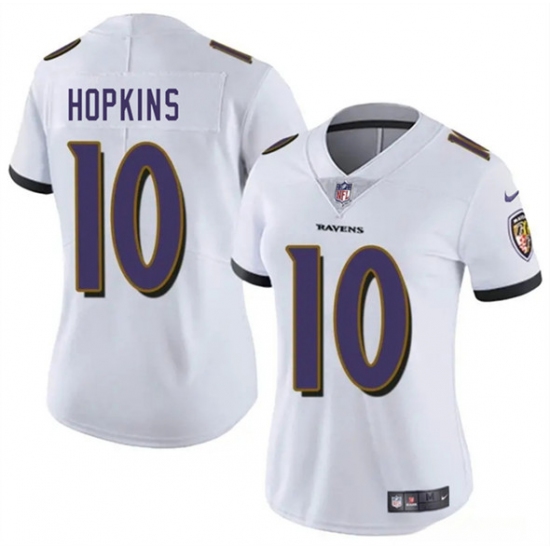 >Women's Baltimore Ravens #10 DeAndre Hopkins White 2025 Vapor Football Jersey(Run Small)