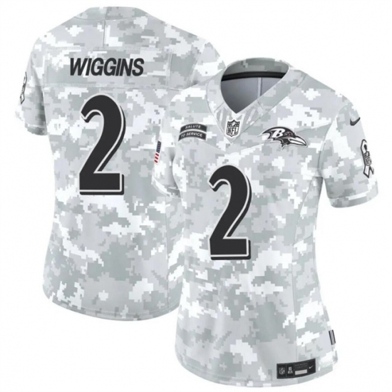>Women's Baltimore Ravens #2 Nate Wiggins 2024 F.U.S.E Arctic Camo Salute To Service Limited Stitched Football Jersey(Run Small)