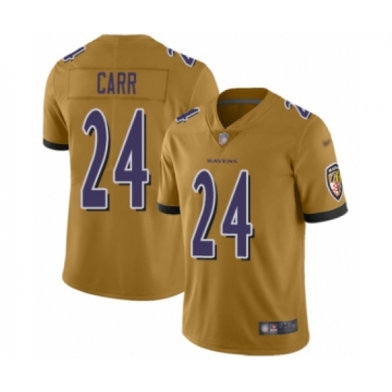 Women's Baltimore Ravens #24 Brandon Carr Limited Gold Inverted Legend Football Jersey