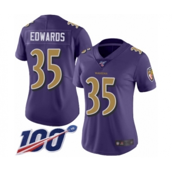 Women's Baltimore Ravens #35 Gus Edwards Purple Team Color Vapor Untouchable Limited Player 100th Season Football Jersey