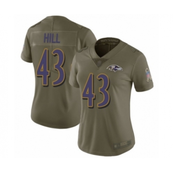 Women's Baltimore Ravens #43 Justice Hill Limited Olive 2017 Salute to Service Football Jersey