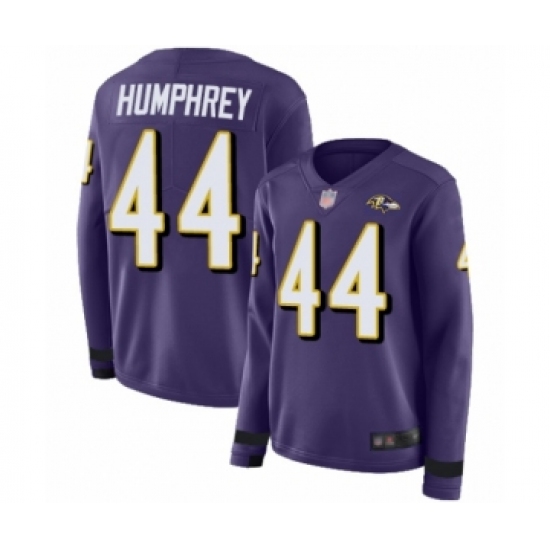 >Women's Baltimore Ravens #44 Marlon Humphrey Limited Purple Therma Long Sleeve Football Jersey