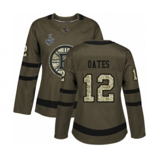 Women's Boston Bruins #12 Adam Oates Authentic Green Salute to Service 2019 Stanley Cup Final Bound Hockey Jersey