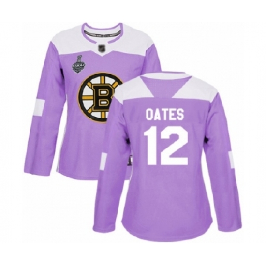 >Women's Boston Bruins #12 Adam Oates Authentic Purple Fights Cancer Practice 2019 Stanley Cup Final Bound Hockey Jersey