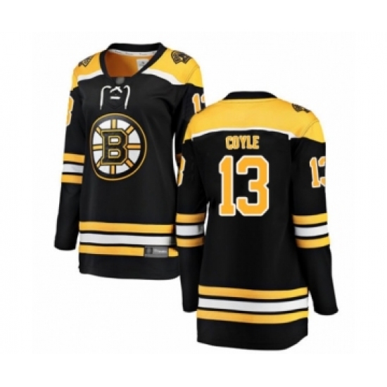 >Women's Boston Bruins #13 Charlie Coyle Authentic Black Home Fanatics Branded Breakaway Hockey Jersey