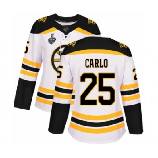Women's Boston Bruins #25 Brandon Carlo Authentic White Away 2019 Stanley Cup Final Bound Hockey Jersey