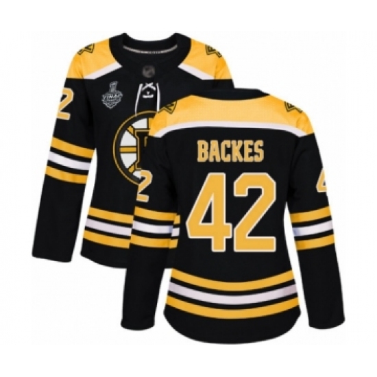 >Women's Boston Bruins #42 David Backes Authentic Black Home 2019 Stanley Cup Final Bound Hockey Jersey