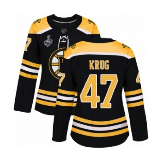 >Women's Boston Bruins #47 Torey Krug Authentic Black Home 2019 Stanley Cup Final Bound Hockey Jersey