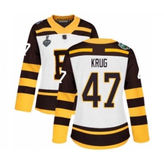 >Women's Boston Bruins #47 Torey Krug Authentic White Winter Classic 2019 Stanley Cup Final Bound Hockey Jersey