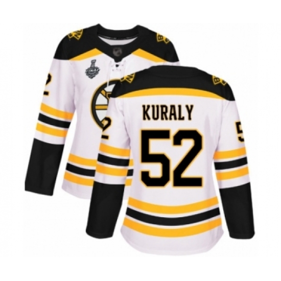 Women's Boston Bruins #52 Sean Kuraly Authentic White Away 2019 Stanley Cup Final Bound Hockey Jersey